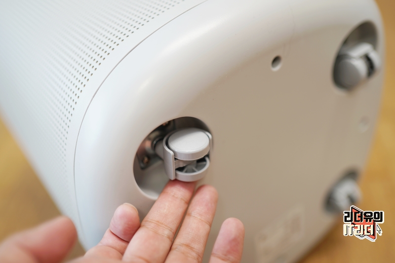 그리고 아이를 위한 설계가 되어 있는데요. 회전팬이 비노출 되어 있는 구조라 아이들에게 발생할 수 있는 위험상황이 없습니다. 그리고 위의 안전망을 빼면 자동으로 멈추게 설계가 되어 있어 혹시나 모를 위험으로부터 완벽 차단하고 있습니다.