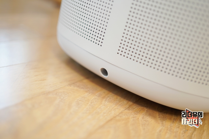 본체 하단에는 전원선을 꽂을 수 있는 단자가 있습니다. 미니멀한 구조로 최적의 설계를 해두었습니다.