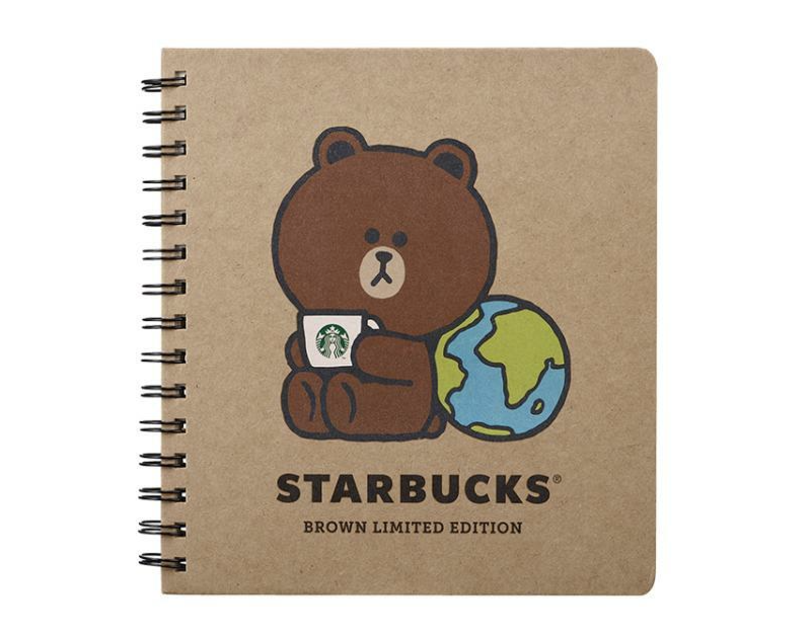 2022년 스타벅스 라인프렌즈 지구의날 에디션 노트는 360도로 펼쳐지는 트윈링 제본 노트입니다. 귀여운 브라운 캐릭터와 지구 그림이 인상적입니다.