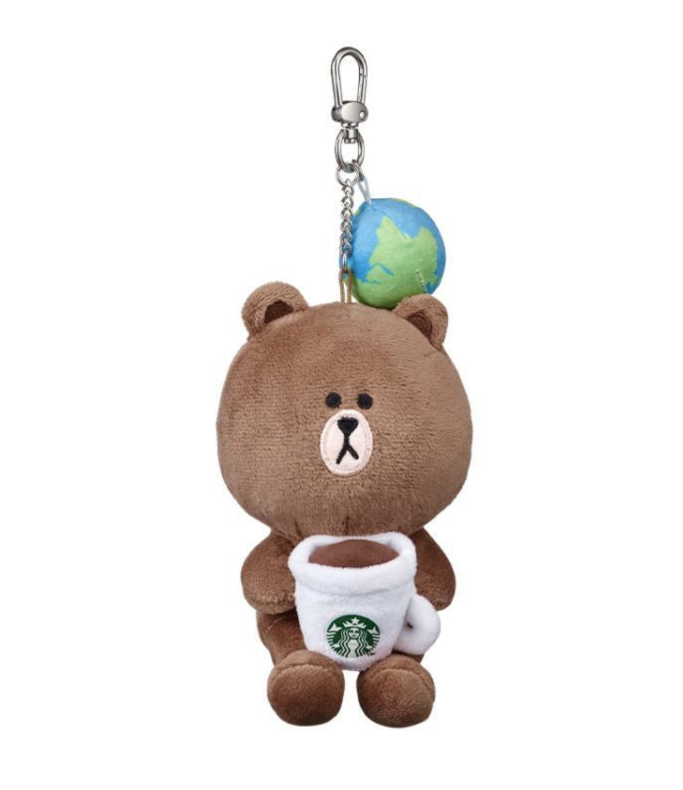 2022년 스타벅스 라인프렌즈 지구의날 에디션 키체인은 스타벅스 커피를 들고 있는 브라운 인형과 지구 인형이 조합되었습니다. 가방에 걸기 좋은 사이즈 입니다.