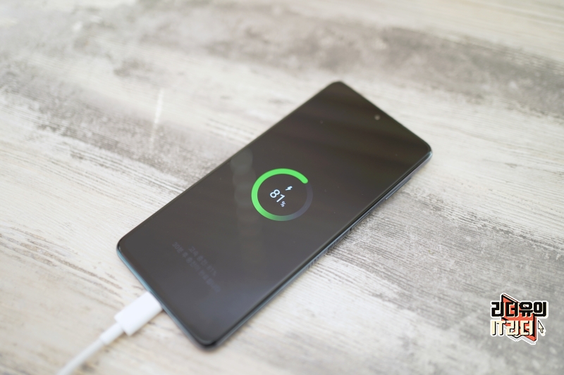 아랫면에는 스피커와 USB-C 타입 단자를 확인할 수 있습니다. 충전은 25W 초고속 충전을 지원합니다.