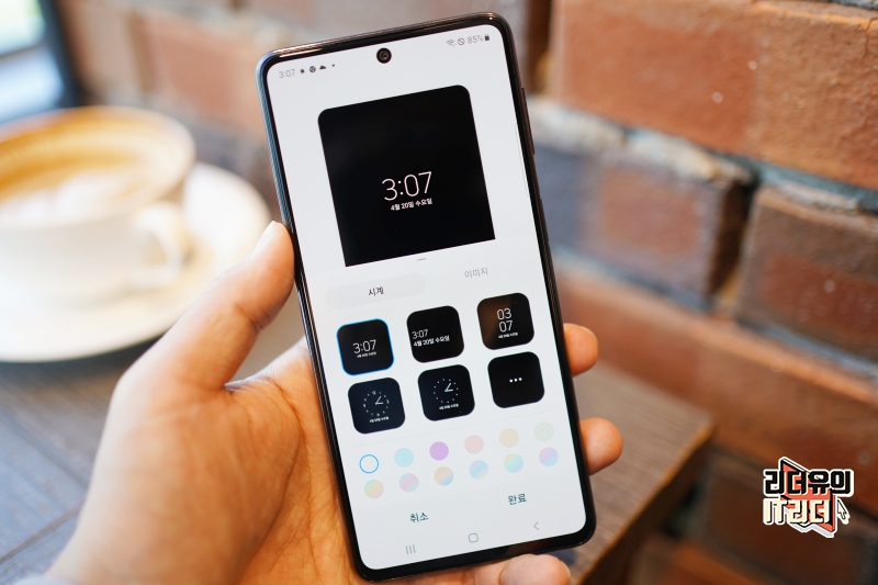 갤럭시 퀀텀3 5G는 AOD (Always on display)도 지원합니다. 화면이 꺼졌을때 시간 정보와 다양한 알림을 볼 수 있어 좋습니다. 시계 디자인, 색상 변경도 가능합니다.