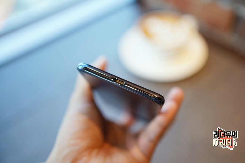 아랫면에는 스피커와 USB-C 타입 단자를 확인할 수 있습니다. 충전은 25W 초고속 충전을 지원합니다.