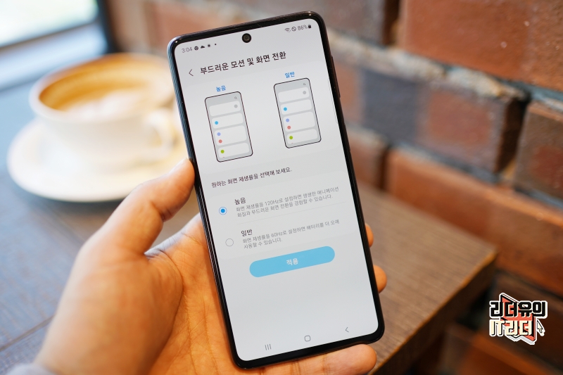그리고 스마트폰 화면에서 고주사율이 중요해지고 있는데요. 갤럭시 퀀텀3 5G는 120Hz 주사율을 지원해 한층 더 부드러운 화면을 볼 수 있습니다. 기본적인 사용씬에서 만족도가 높은 스마트폰이라 보시면 됩니다.