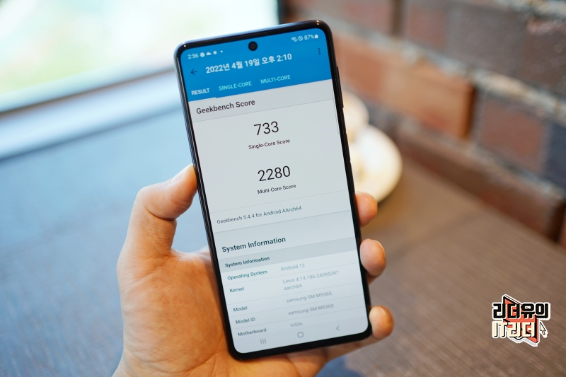 갤럭시 퀀텀3 5G 긱벤치5 점수는 싱글코어 733점, 멀티코어 2280점으로 꽤 좋은 성능을 보여주고 있습니다. 이 정도 성능이면 스마트폰을 사용하는데 있어 전혀 불편함을 느낄 수 없을 것입니다.
