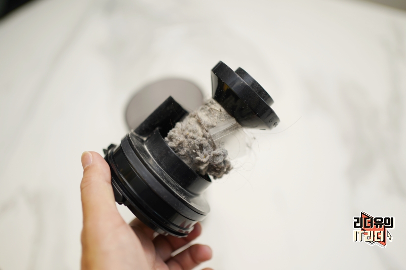 그리고 먼지통 안에도 먼지들이 뭉쳐져서 모여 있는 걸 볼 수 있습니다. 가볍게 비워주기만 하면 됩니다.