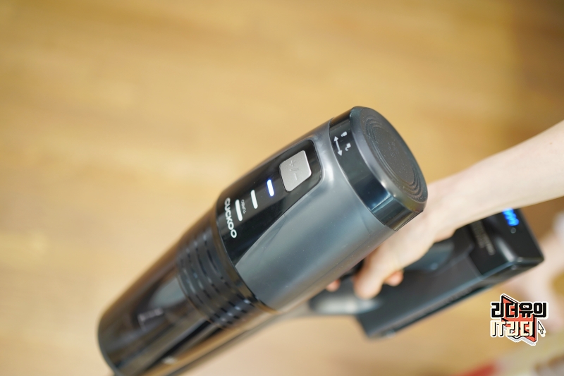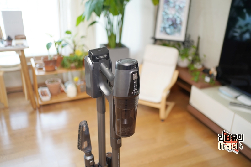 쿠쿠 파워클론 무선청소기 CVC-B1010UG 먼지통은 본체에 달려 있고 위쪽에 반투명으로 달려 있어 시각적으로 먼지 상태 확인을 쉽게 할 수 있습니다.