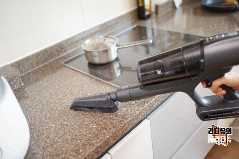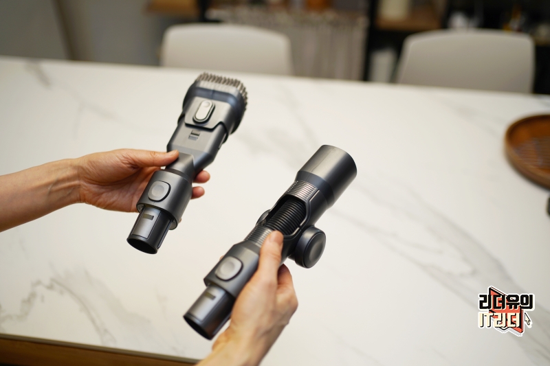 좁은 공간을 청소하기 좋은 2in1 브러쉬는 의자나 복잡한 공간을 청소하기에 좋습니다.