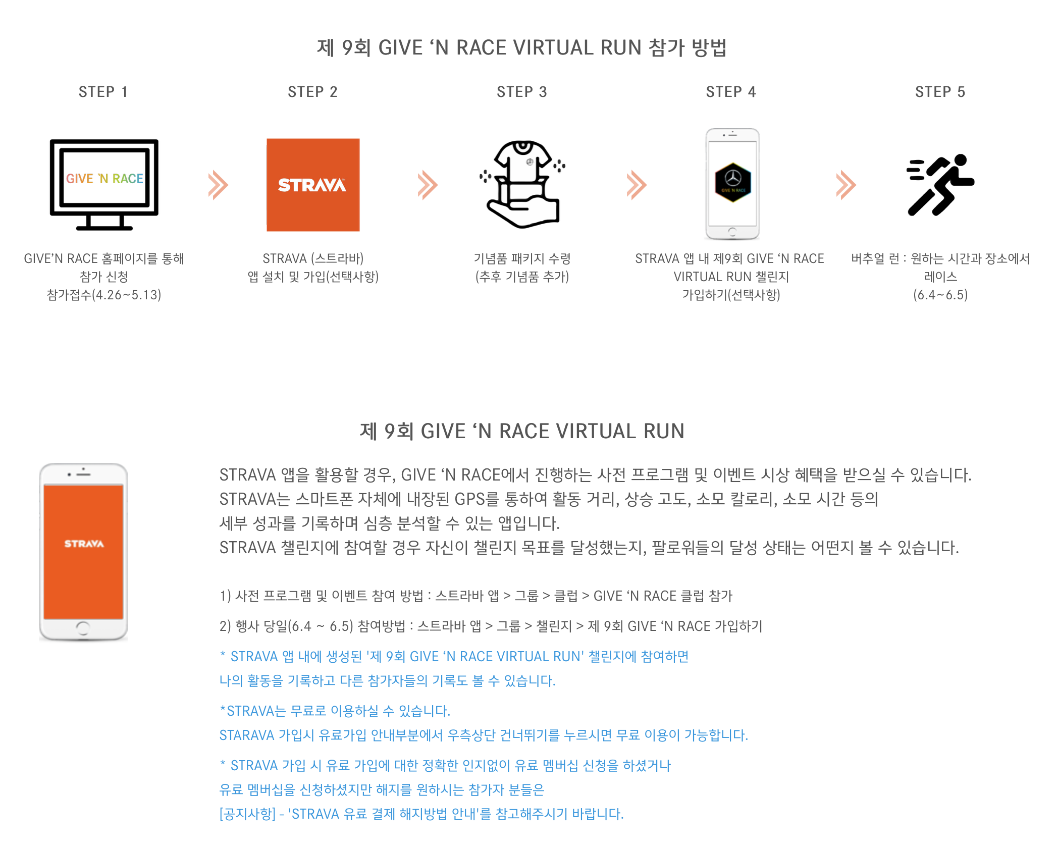 진행 과정은 먼저 신청을 메르세데스 벤츠 기브앤 레이스 사이트에서 하고 기념품을 받게 됩니다. 그 다음 6월 4일~5일 중에 원하는 시간과 장소에서 달리기를 하면 됩니다.