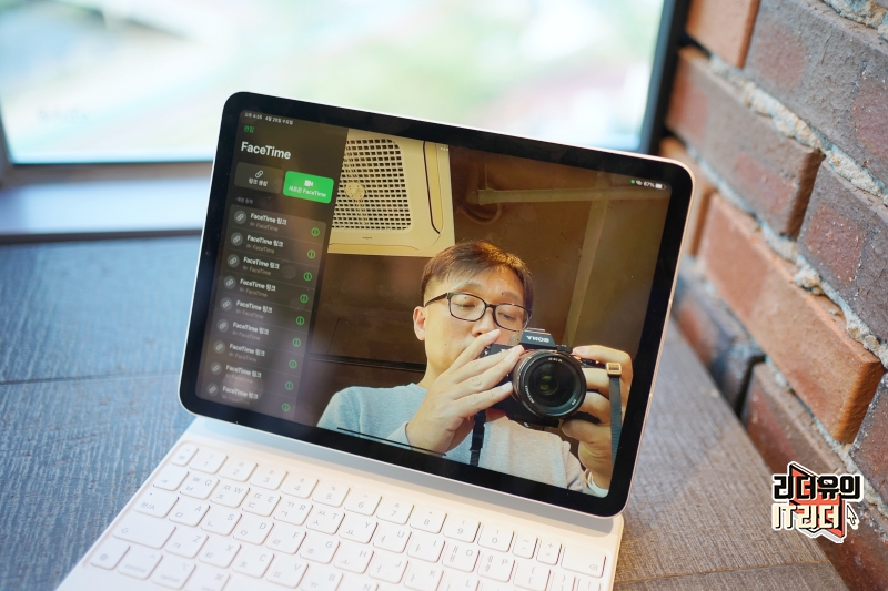 전면 모습은 아이패드 프로 라인 처럼 4면이 다 일정한 베젤 두께를 가지고 있습니다. 10.9형의 대화면을 가지고 있고 디스플레이 품질도 만족스러워서 고급스러운 아이패드의 매력을 제대로 느낄 수 있습니다.