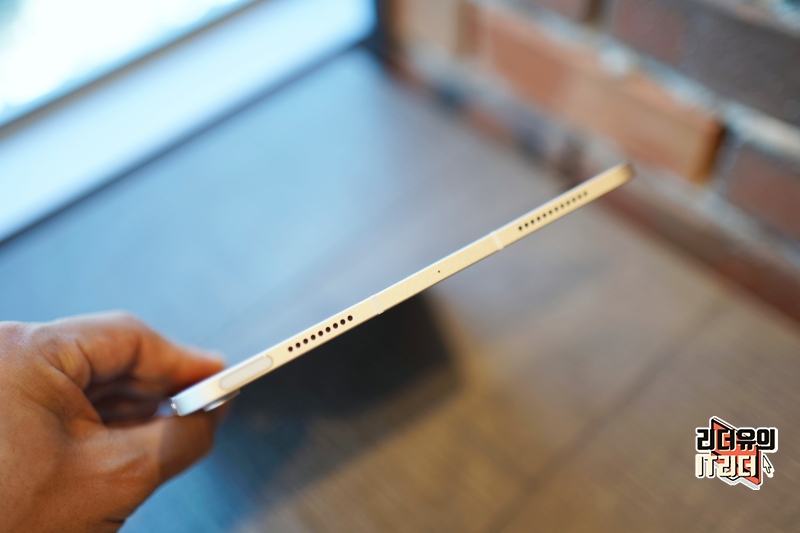 오른쪽 면에는 애플 펜슬 2세대를 부착할 수 있는 자석식 커넥터가 있습니다.
