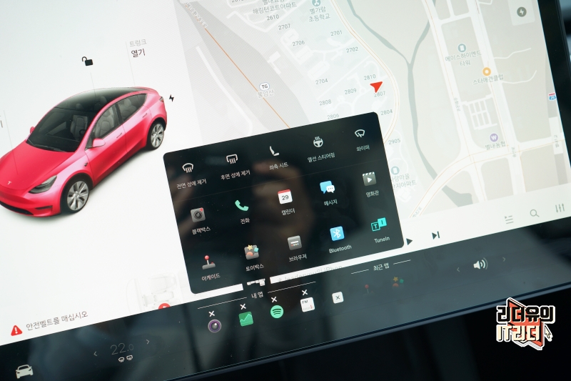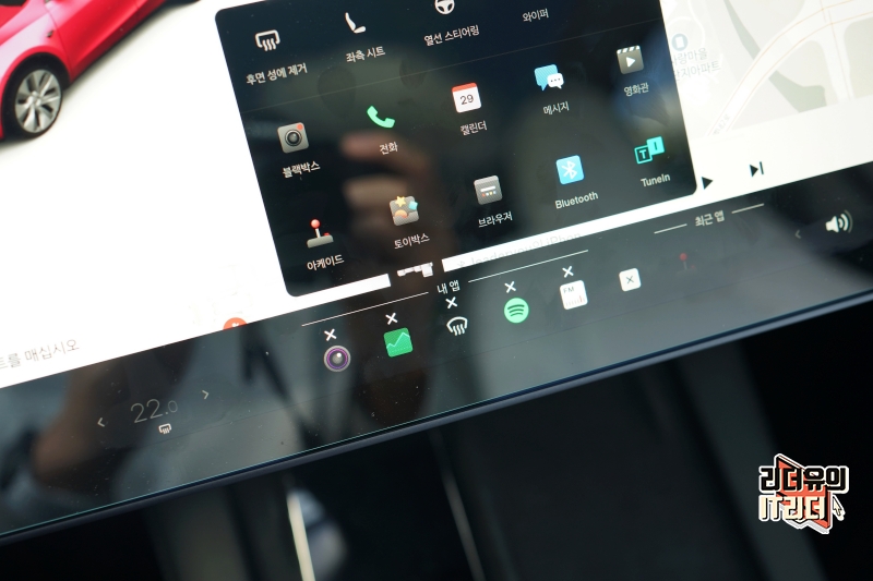 테슬라 모델Y, 모델3 하단 표시줄에는 앱을 등록해서 사용할 수 있습니다. 이 변화도 업데이트를 통해 생긴 변화인데요. 이번 12.3.1 업데이트에서는 여기에 더 많은 기능을 등록할 수있는 변화가 생겼습니다.