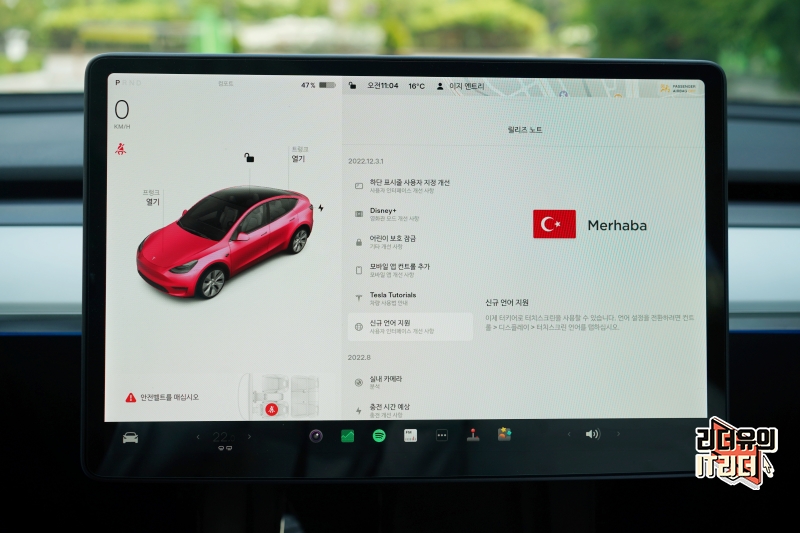 이번 테슬라 12.3.1 업데이트 내용을 보면 하단 표시줄 사용자 지정 개선, 디즈니플러스 추가, 어린이 보호 잠금 업그레이드, 모바일 앱 컨트롤 추가, 테슬라 튜토리얼 업그레이드, 신규 언어 지원이 있습니다.