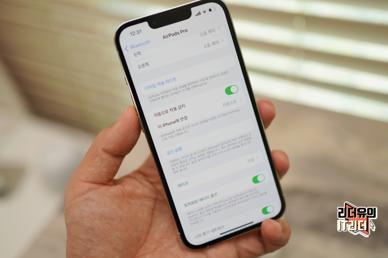 공간음향 설정은 제어센터에서 이어폰 선택을 해 공간 음향 머리 추적 기능을 활성화 및 끄기를 할 수 있고