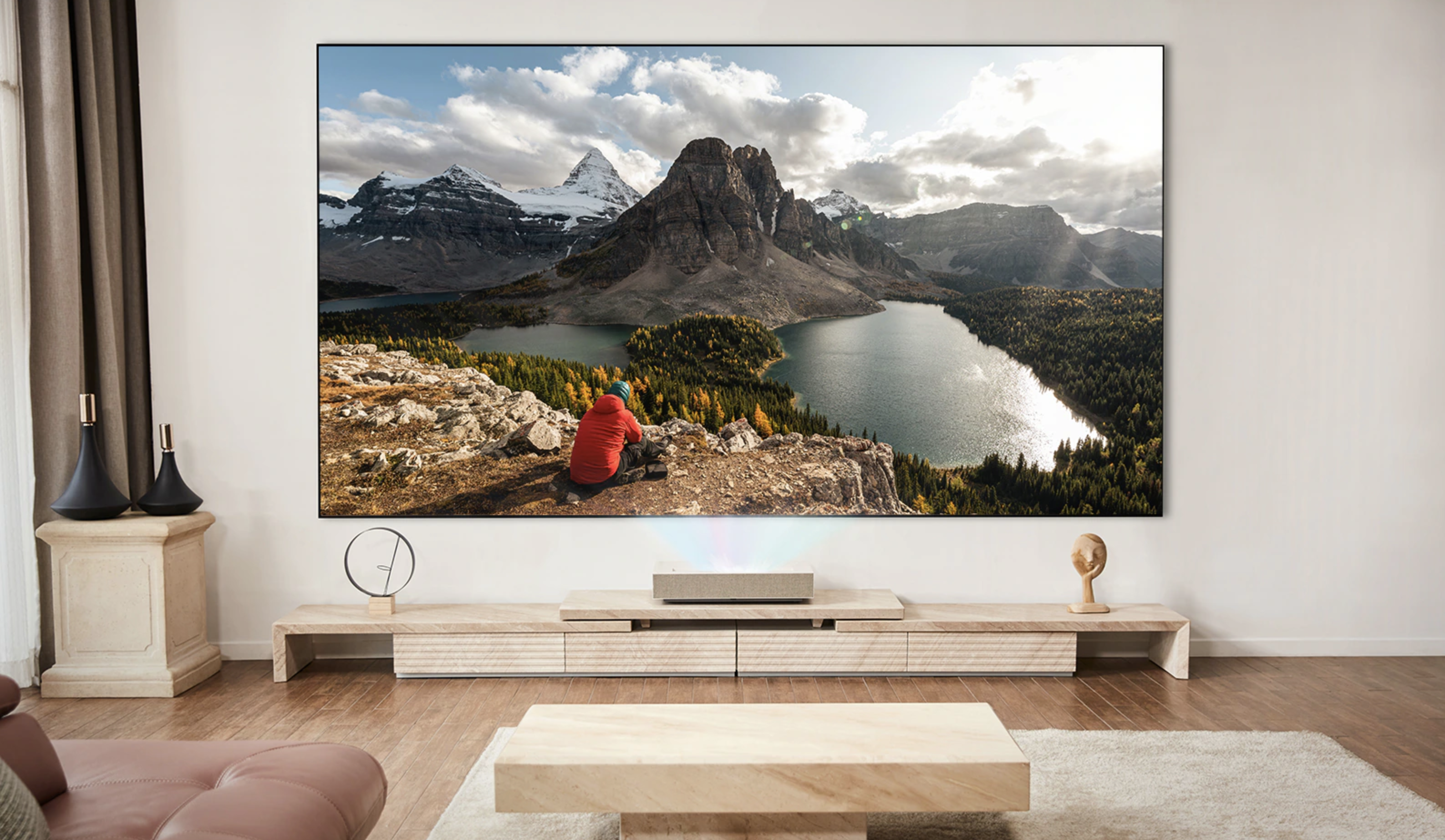 2022년 LG 시네빔 레이저 4K 신제품은 빛의 삼원색 (레드, 그린, 블루)을 구현하는 레이저 광원 3개를 동시에 활용한 '3채널 레이저 광원'을 탑재했습니다. 단일 광원에 비해 낮에도 더 또렷하고 생생한 화면을 볼 수 있는데요. 무려 3,700 안시루멘의 밝기를 지원해 가정용 초단초점 프로젝터 가운데 업계 최고 수준을 가지고 있습니다.