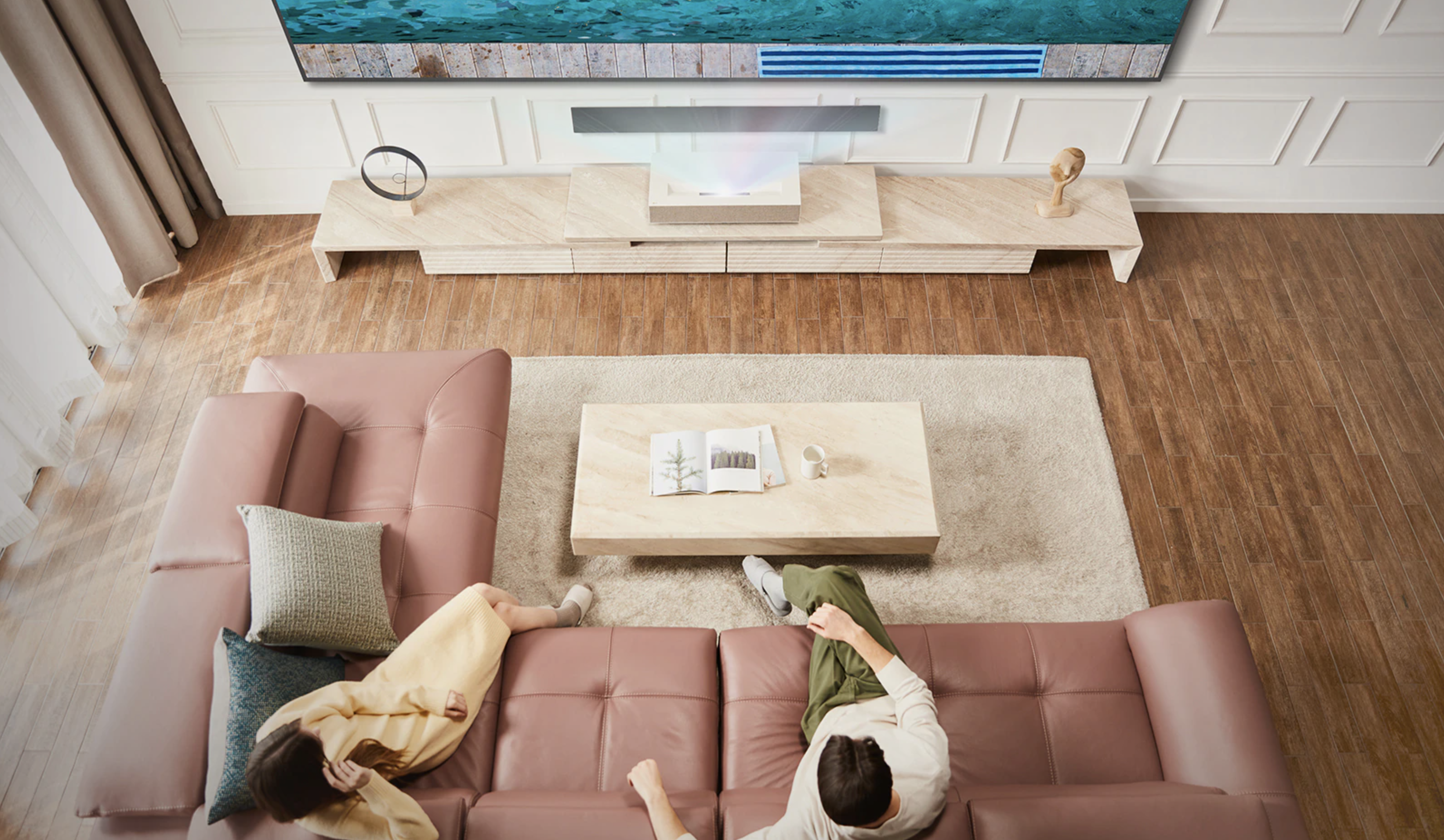 2022년 LG 시네빔 레이저 4K 초단초점 프로젝터의 경쟁력은 고급스러운 미니멀 디자인을 가지고 있습니다. 베이지 색상의 본체와 전면부에는 프리미엄 패브릭 브랜드 크바드라트(Kvadrat) 의 베이지 색상 원단을 적용해 프리미엄 빔프로젝터만의 차별화된 디자인 매력을 느낄 수 있습니다.