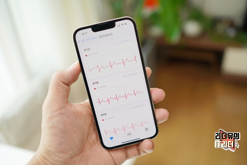 심전도 앱은 애플워치에 보면 심전도 앱이 있고 손가락을 디지털 크라운에 댄채로 유지하면 체크를 해줍니다.  기록된 심전도 정보는 아이폰 건강 앱에서 확인이 가능합니다. 심전도는 우리의 심혈관 심장 건강 상태를 파악할 수 있는 기능입니다. 심장에 문제가 생겨서 갑자기 쓰러지는 경우들이 있는데요. 이런 문제점을 조기에 발견할 수 있는 의미있는 기능입니다. 그리고 불규칙한 심장 박동 알림은 심장 박동이 불규칙하게 올라가거나 떨어지면 경고를 주는 기능입니다. 심전도와 마찬가지로 심장 건강을 지킬 수 있는 애플워치의 핵심적인 기능입니다.