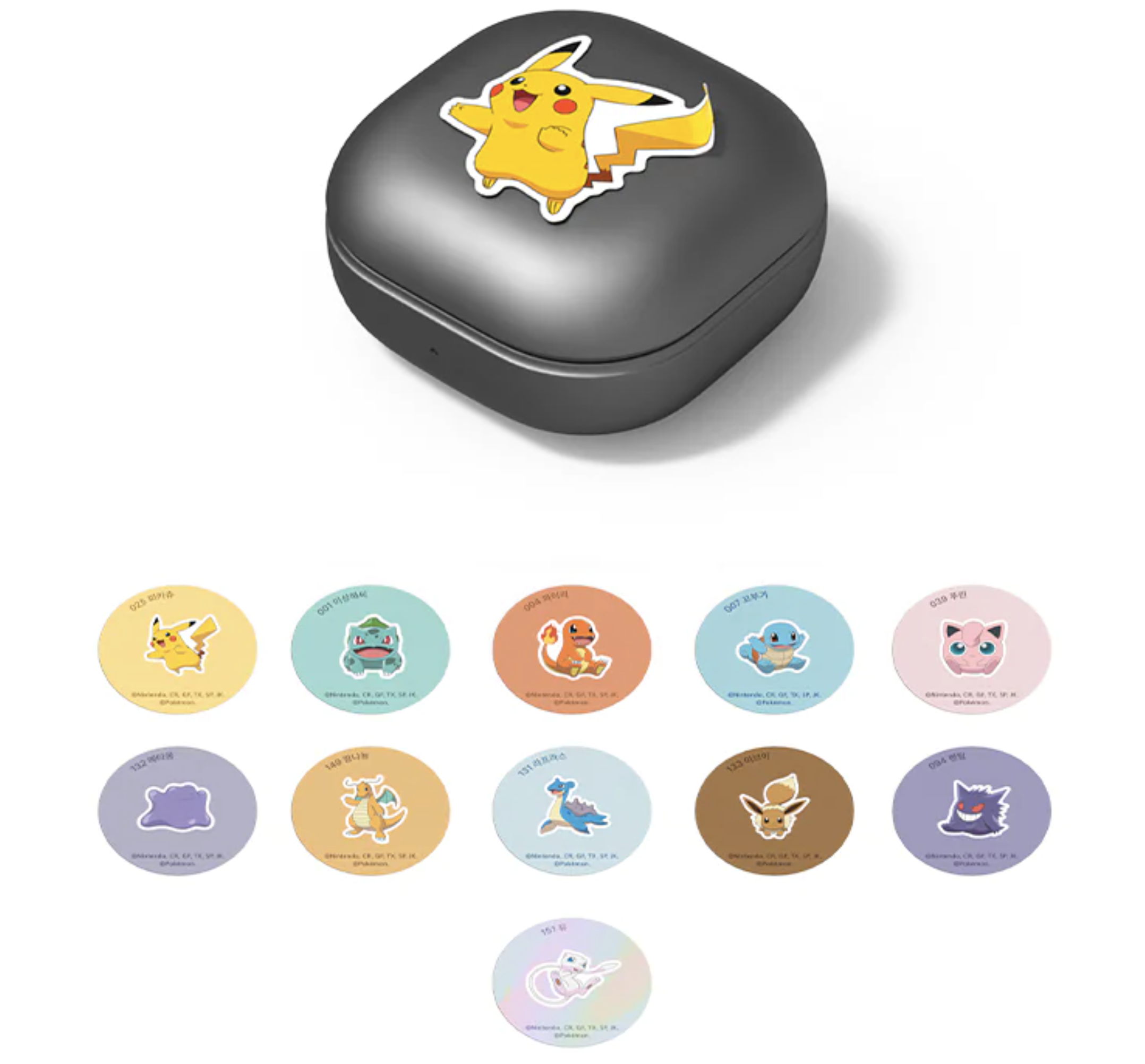 포켓몬 스티커는 갤럭시 버즈2 기본 패키지에 부착도 가능합니다. 나름 귀여운 디자인으로 케이스 사용을 할 수 있습니다.