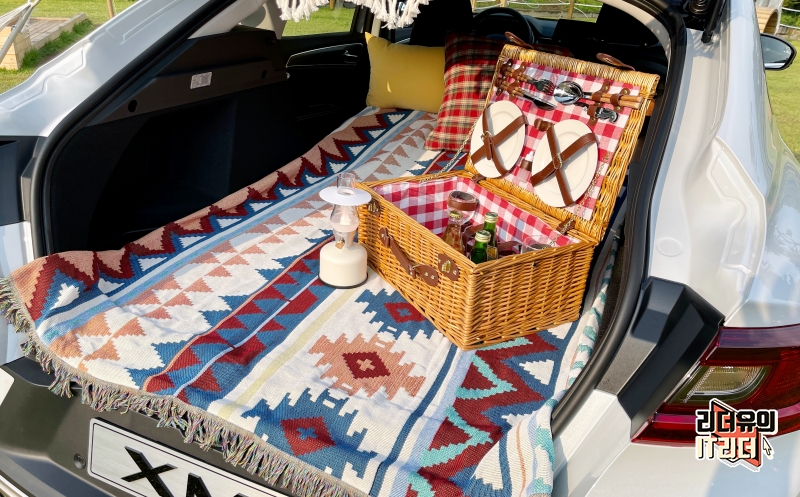 차박을 할때는 이렇게 오픈해 두면 반은 차안, 반은 차밖이라 텐트 같은 효과를 볼 수 있습니다. 꾸미기까지 완성하면 낭만적인 차박 모드에 들어가게 됩니다.