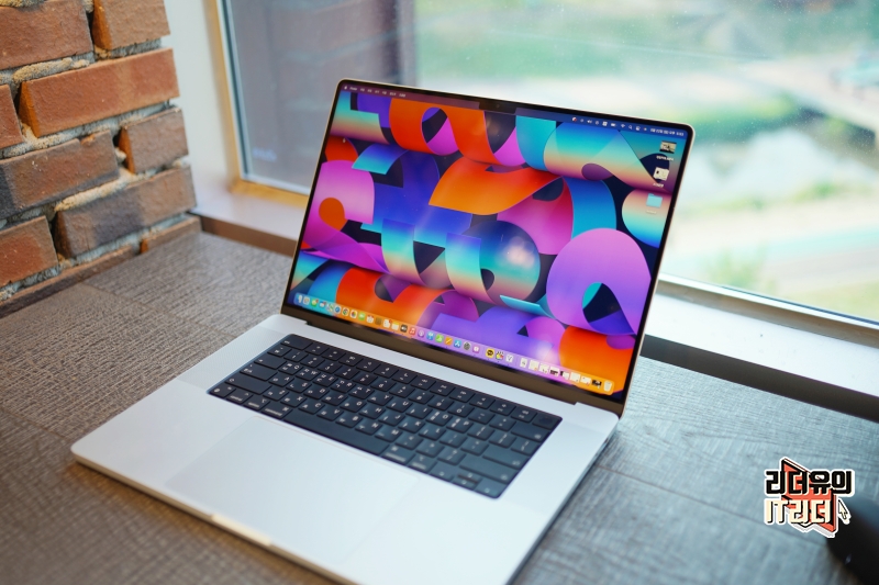 기분전환으로 M1 Pro 맥북프로 16인치에 새로운 애플 스튜디오 디스플레이 배경화면을 적용한 모습입니다. 산뜻하니 예쁘죠? 배경화면만 바꿔도 새로운 노트북을 산 느낌이니 여러분도 변경해 보세요.