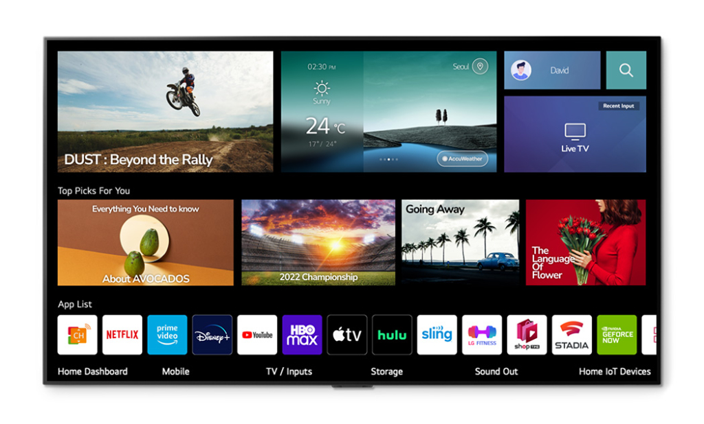 2022년 LG 룸앤 TV는 webOS 22 기반의 스마트 TV로 넷플릭스, 웨이브, 애플TV, 유튜브 등 다양한 서비스를 이용할 수 있고 LG 피트니스, 틱톡 등 다양한 콘텐츠를 즐길 수 있게 준비되었습니다.