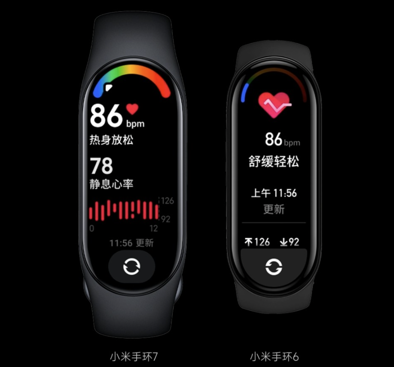샤오미 미밴드7은 미밴드6 보다 0.6인치 화면이 커진 1.62인치 AMOLED 디스플레이를 탑재하고 나왔습니다. 미밴드6에서 위아래 꽉찬 화면을 통해 한층 진화된 미밴드의 모습을 보여줬는데 샤오미 미밴드7은 아예 전체적인 사이즈의 변화를 주는 대대적인 변화를 통해 새로운 미밴드의 시작을 알렸습니다.