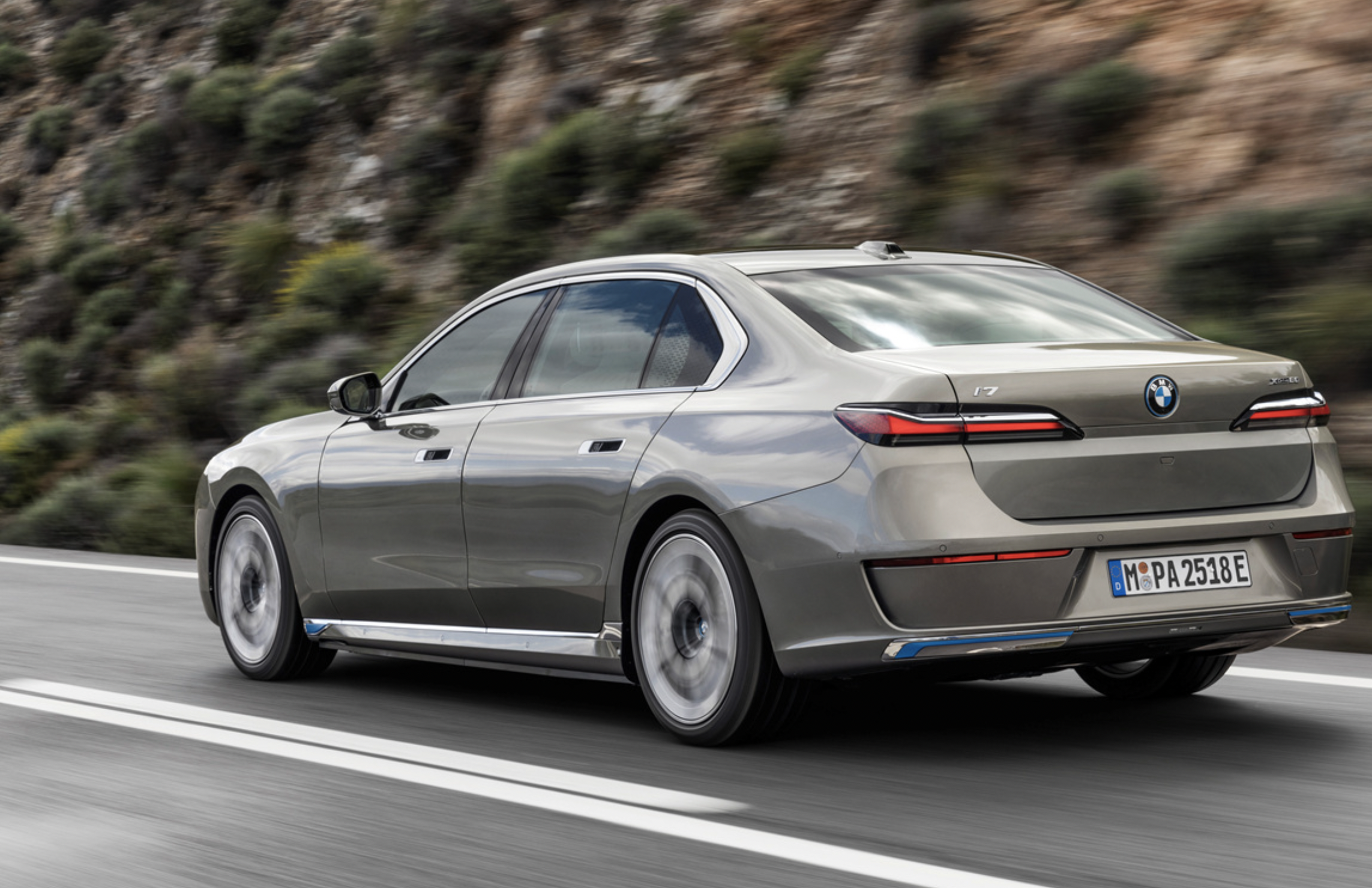 BMW i7 후면 모습은 날렵한 테일램프 디자인을 볼 수 있습니다. 기존 모델과 크게 다르지 않은 디자인 같지만 더욱 날렵해진 라인으로 고급스러운 디자인 매력을 보여주고 있습니다. 개인적으로 전면 보다는 후면 모습이 더 멋져 보입니다.