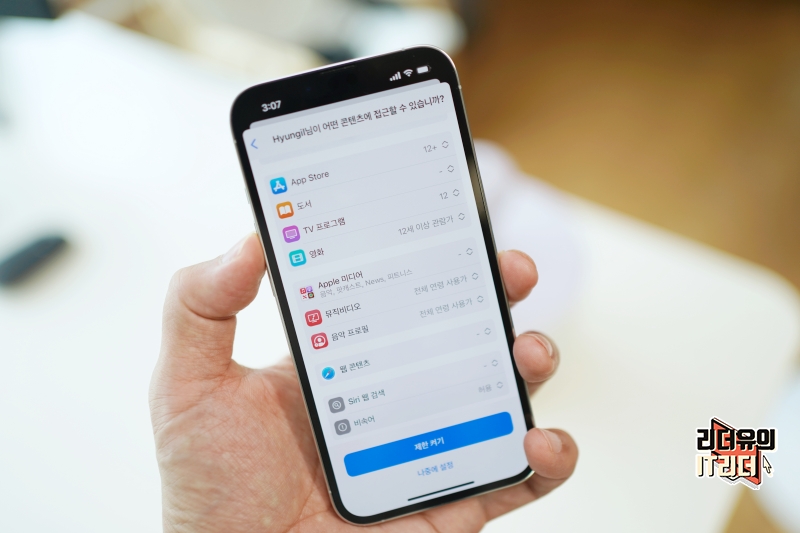 아이폰 가족 공유시 자녀의 계정을 설정하는데 있어 유해 콘텐츠 차단 기능을 보다 손쉽게 할 수 있는 방법을 지원합니다. 앱, 영화, 책, 음악 등 연령별 제한 제안 그리고 기존 유해 콘텐츠 차단 기능을 자동으로 적용하게 됩니다. 그리고 새로운 기기를 설정할 때 이런 설정이 그대로 반영되는 기능도 포함하고 있습니다.