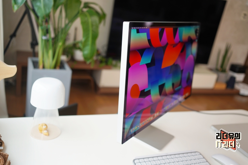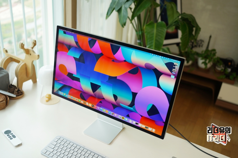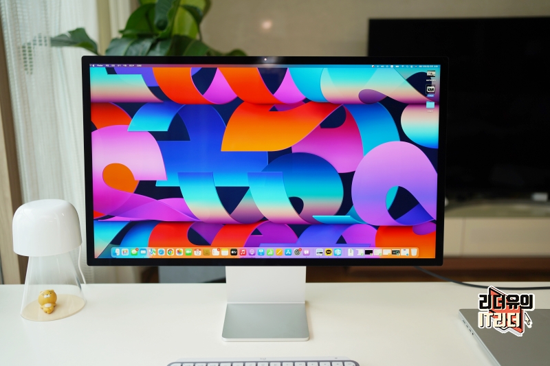 애플 스튜디오 디스플레이 해상도는 5120 x 2880인 5K 모니터 입니다. 그리고 글래어 패널로 되어 있어 비침이 많지 않을까 걱정했는데요. 생각외로 비침 현상은 느껴지지 않았습니다. 물론 빛의 각도에 따라 환경에 따라 다를 수 있겠지만 일단 제가 사용하는 환경에서는 전혀 문제가 되지 않는 비침입니다.