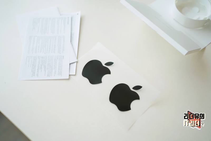 그리고 애플 스티커 2장도 애플 스튜디오 디스플레이 구성품으로 제공됩니다.