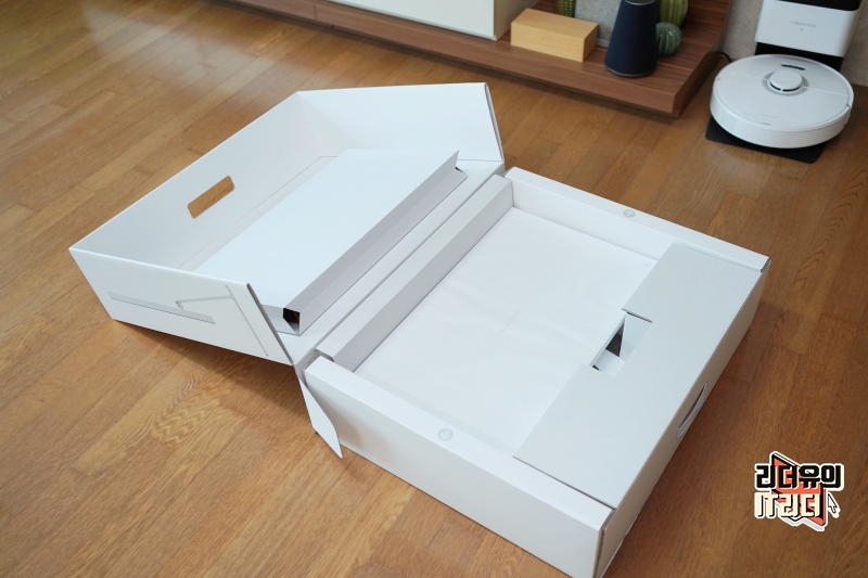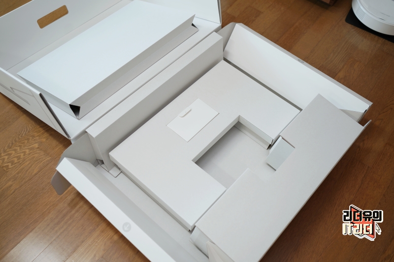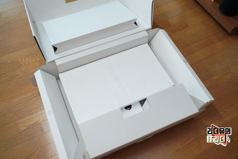 종이 포장을 걷어내면 또 한번 종이 보호지로 모니터가 보호되고 있습니다. 혹시나 발생할 수 있는 스크레치를 방지하기 위해 꼼꼼하게 보호되는 모습이 인상적입니다.