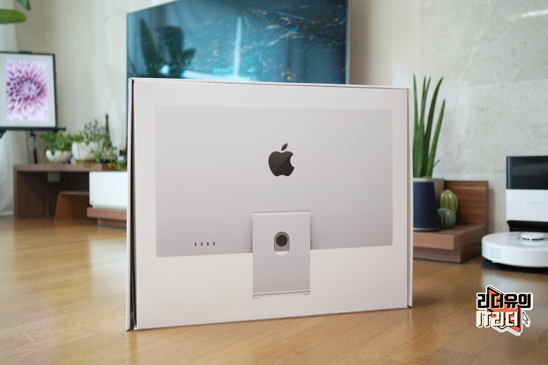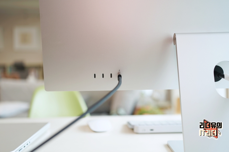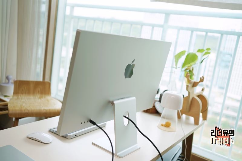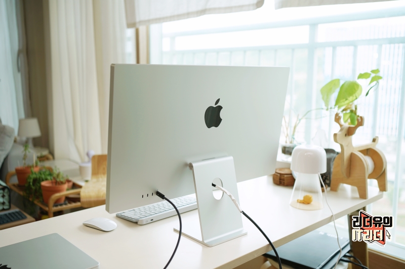 후면에는 애플 스튜디오 디스플레이 후면 모습이 있습니다.