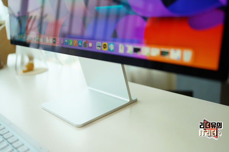 애플 스튜디오 디스플레이 후면 모습입니다. 역시 애플답게 고급스러운 뒷태를 보여주는데요. 플랫한 디자인에 알루미늄 소재라 고급스러움의 끝판왕이라 할 수 있습니다. 애플 스튜디오 디스플레이가 27인치 모니터 치고는 너무 비싼 가격이라고 가성비가 안좋다는 말들이 많은데요. 디자인을 고려했을때 이 제품을 대체할 만한 모니터가 있나 싶을 정도로 압도적인 경쟁력을 가지고 있습니다.