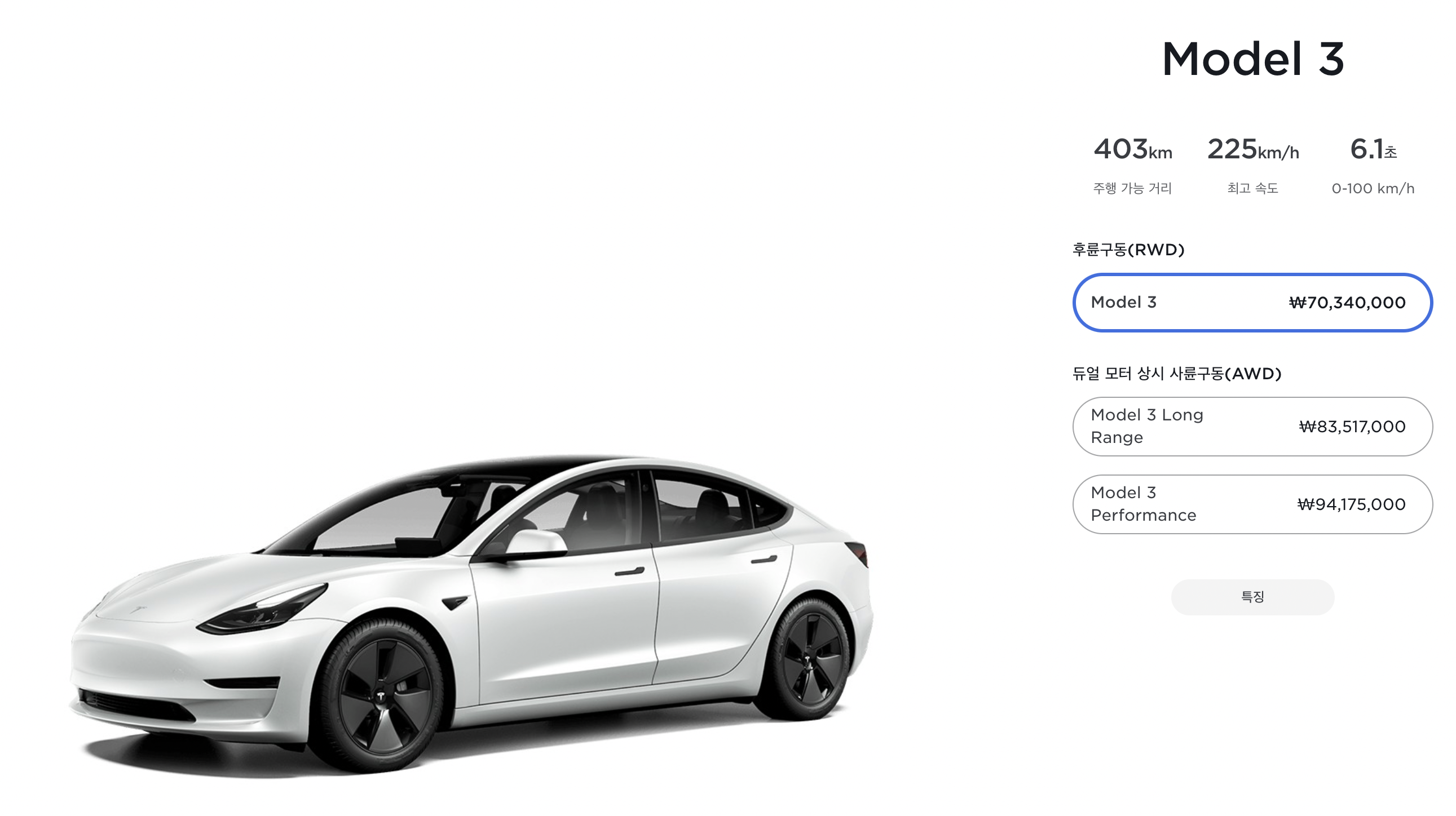 그런데 2022년 6월 17일 가격을 올려 테슬라 모델3는 3,350,000원을 올려서 70,340,000원이 되었고 모델3 롱레인지 가격은 4,727,000원을 올려 83,517,000원이 되었고 모델3 퍼포먼스 가격은 4,485,000원을 올려 94,175,000원이 되었습니다.