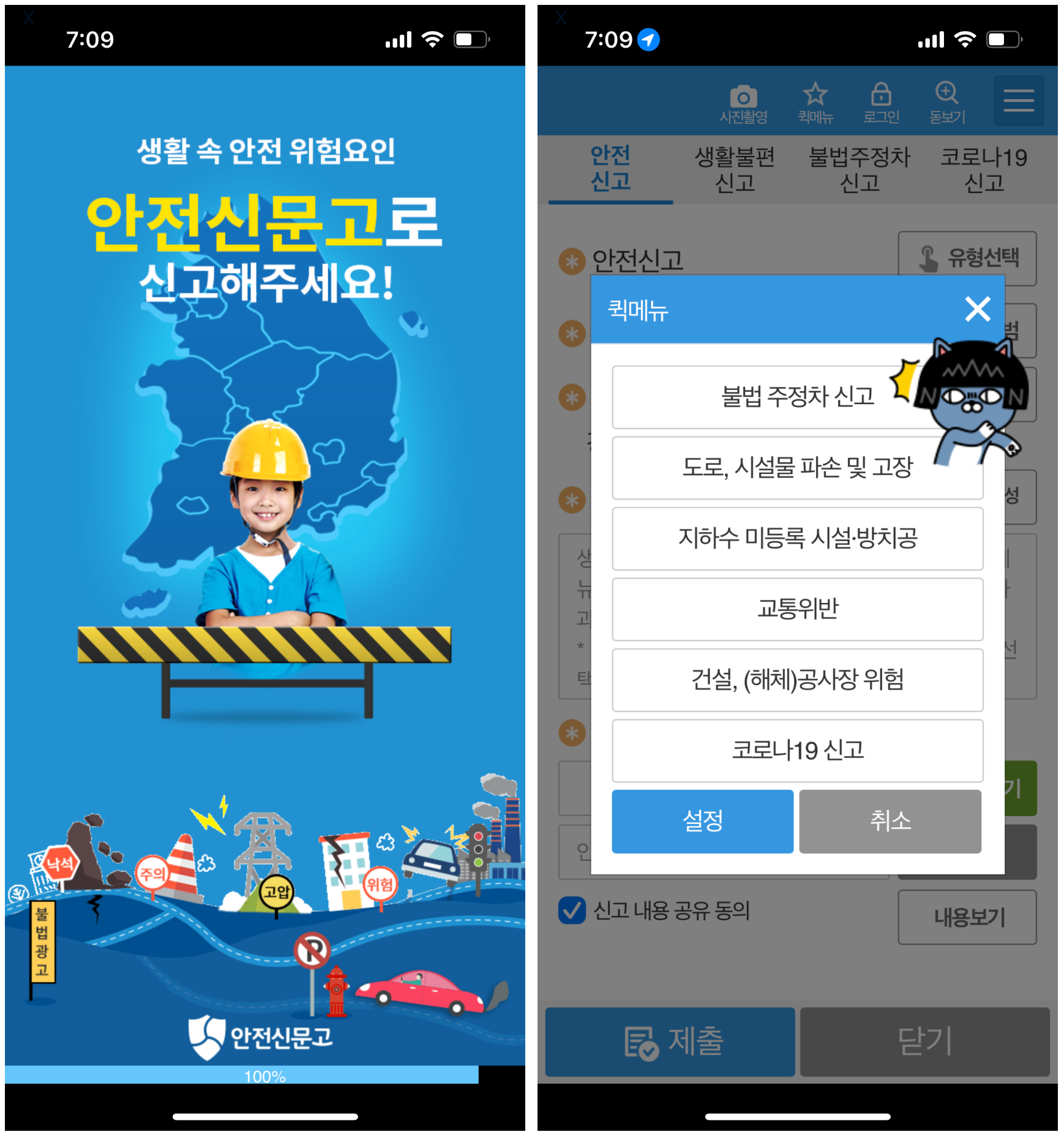 안전신문고 앱을 실행하면 퀵메뉴로 불법 주정차 신고를 할 수 있게 나옵니다.