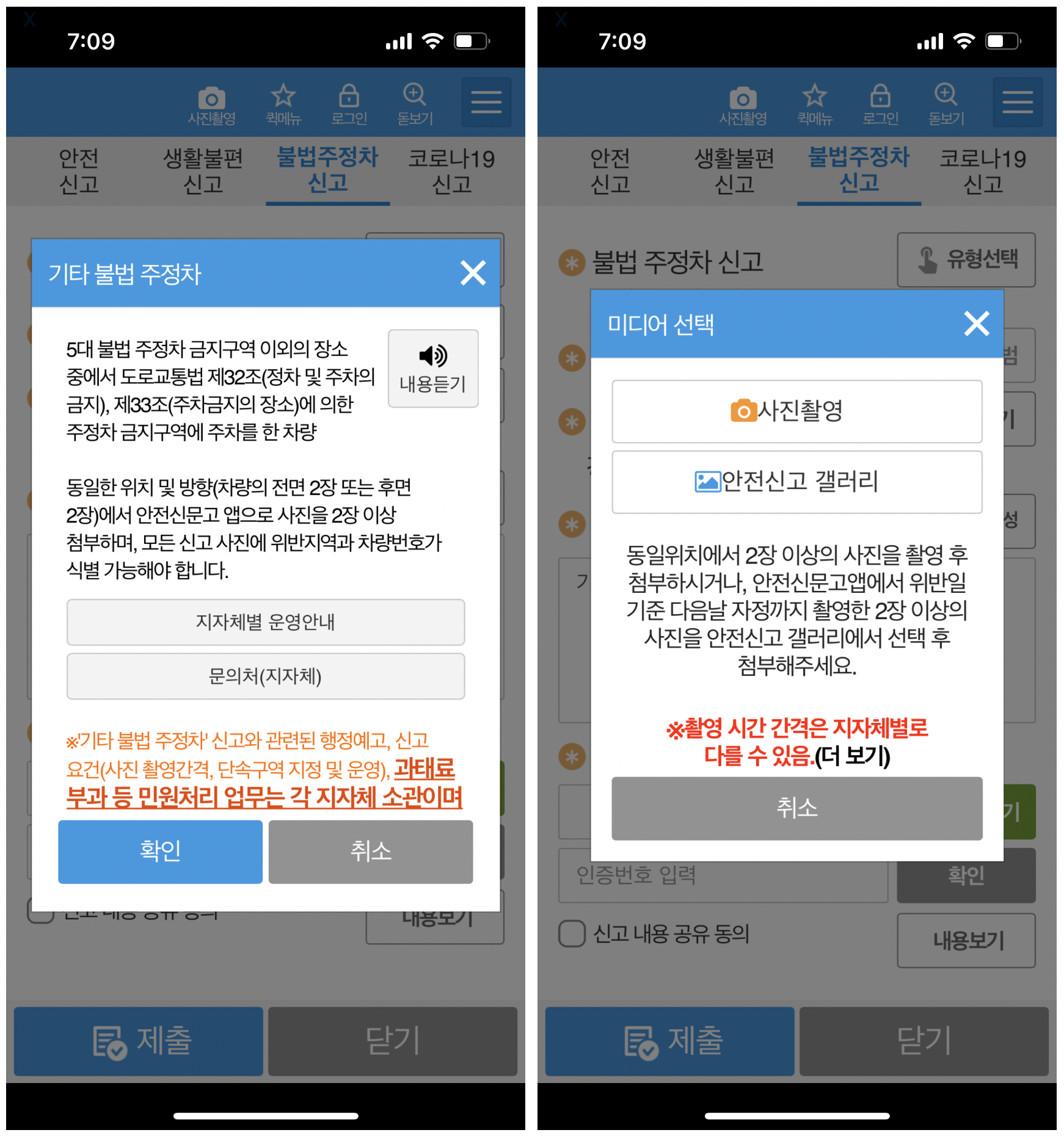 안전신문고 앱을 실행하면 퀵메뉴로 불법 주정차 신고를 할 수 있게 나옵니다.