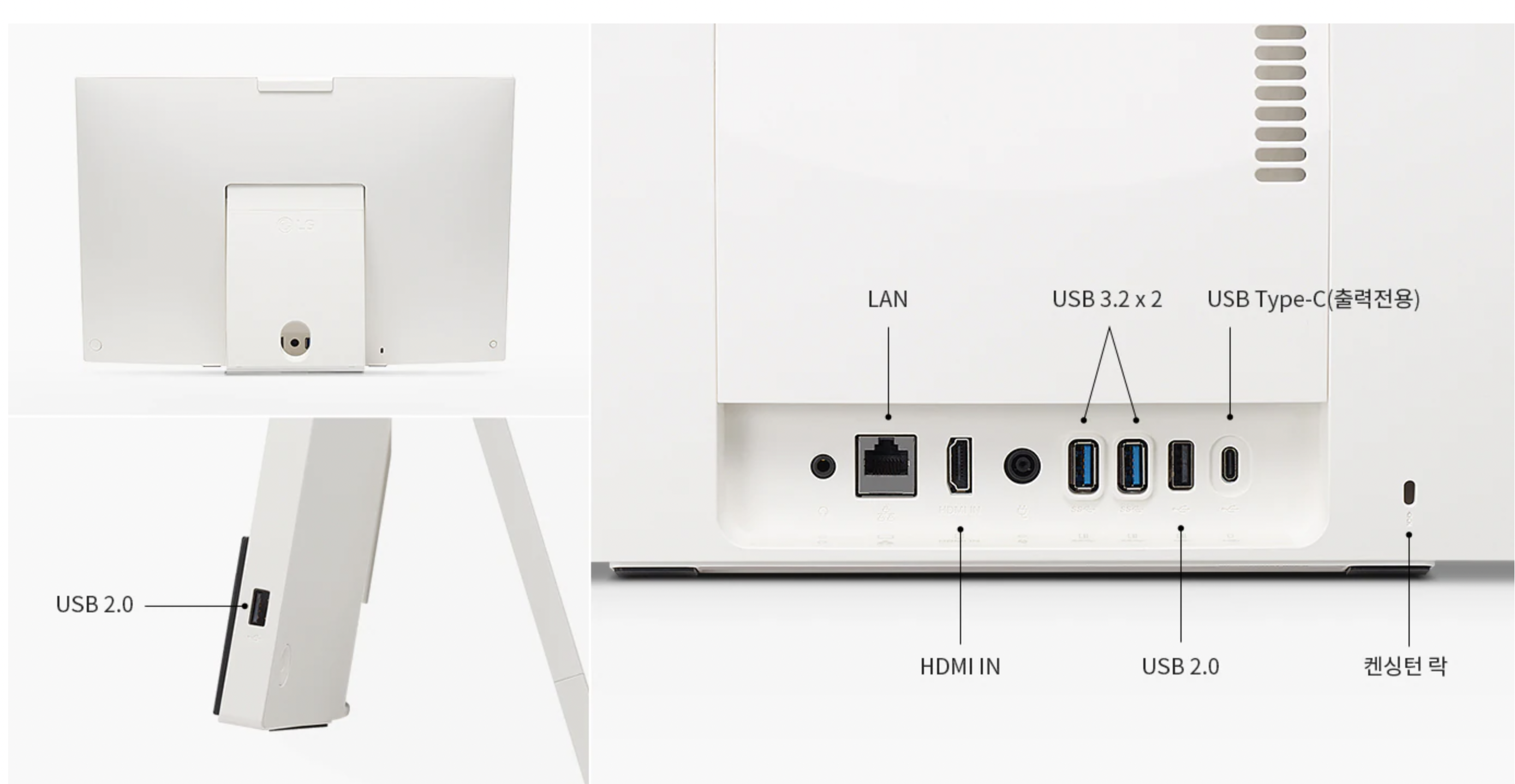 LG 일체형PC (올인원PC) 27V70Q는 독특하게 2가지 거치 모드를 제공해 새로움을 주고 있습니다. 일반 스텐드 모드와 액자 모드를 사용할 수 있는데요. 하판을 분리해 사용이 가능해 다양한 형태로 사용할 수 있습니다. 참고로 틸트를 지원해 약간의 각도 조절을 통해 화면을 볼 수 있습니다.