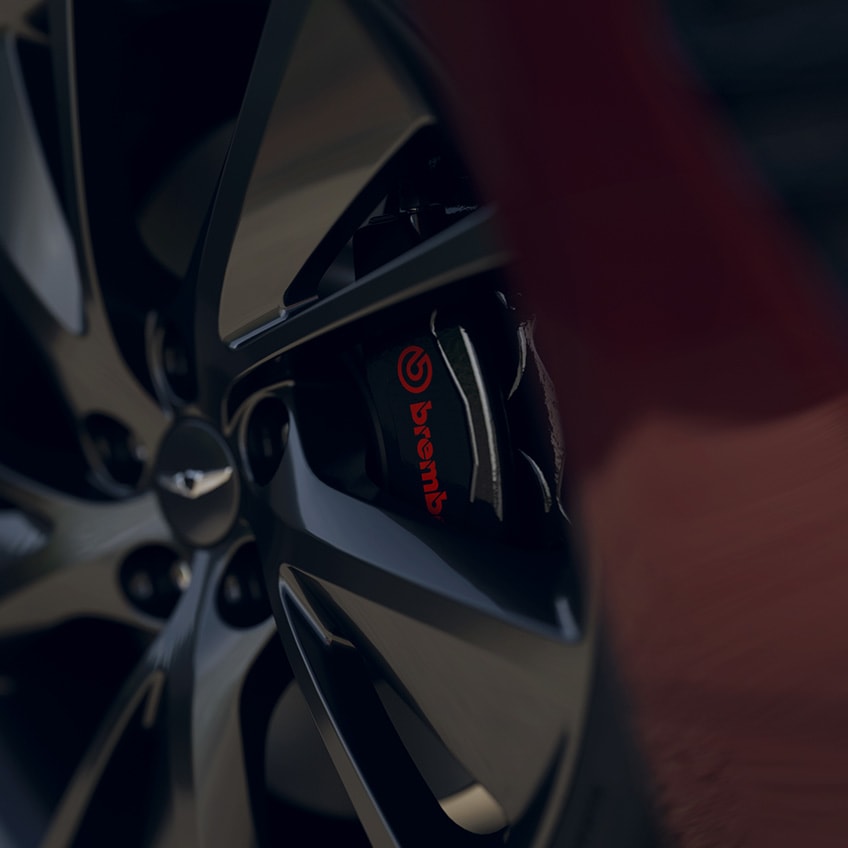 그리고 블랙 컬러 브렘보 모노블럭 브레이크, 19인치 미쉐린 타이어 및 스포츠 전용 휠, 스핀 패턴 알루미늄 도어 가니쉬 및 플로어 콘솔, 스포츠 전용 천연 가죽 시트, 메탈 페달 및 풋레스트, 듀얼 머플러 등을 적용해 다이내믹한 이미지를 강조해서 보여주고 있습니다.