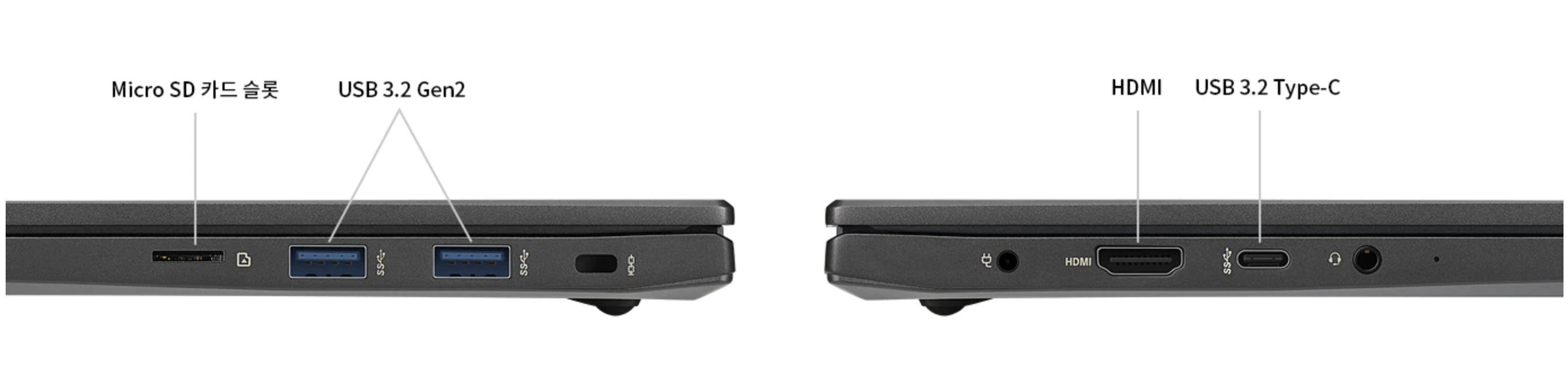 그리고 포트도 풍부해 다양한 확장성을 가져갈 수 있습니다. USB3.2 Typc-C, USB3.2 Type-A 2개, HDMI, Micro SD 슬롯, 헤드폰 출력 단자를 갖추고 있습니다.