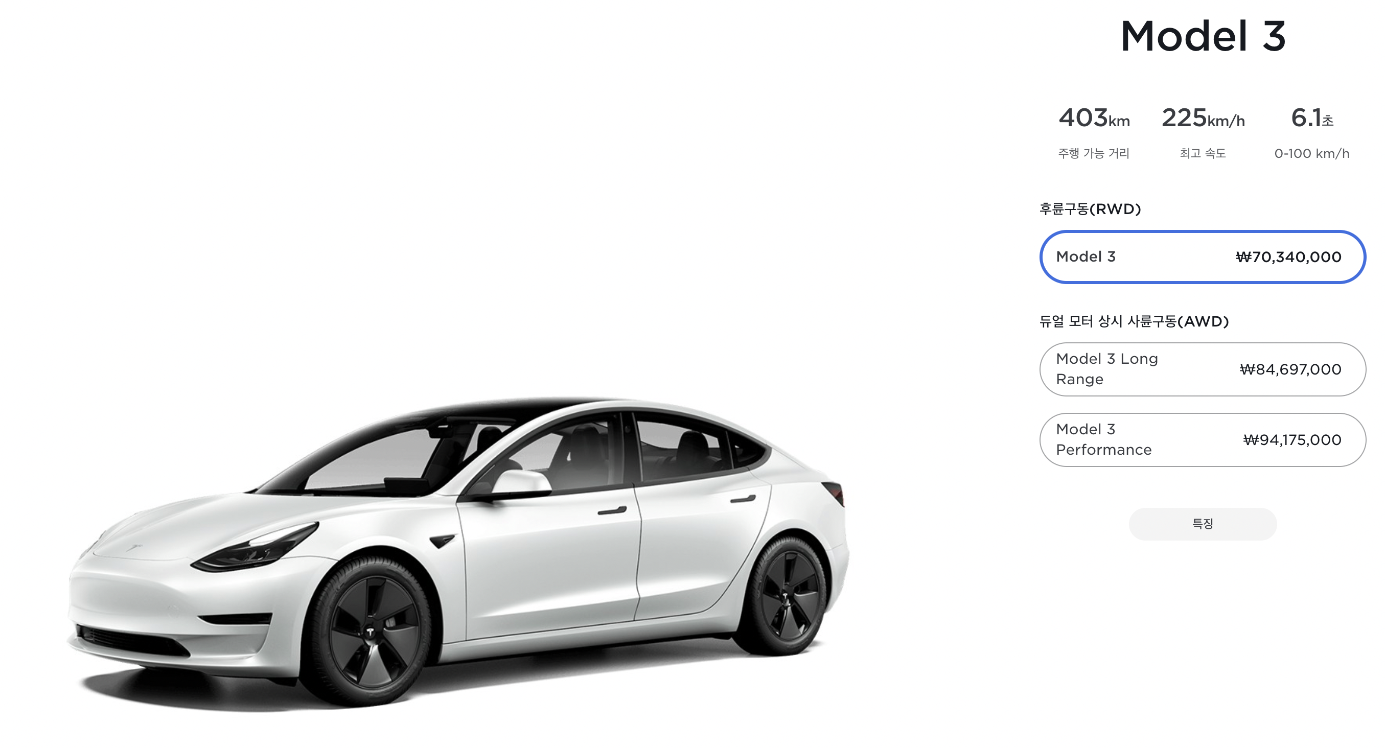 테슬라 모델3도 가격 변화가 생겼는데요. 모델3 같은 경우는 롱레인지 모델만 가격이 올랐습니다. 테슬라 모델3 롱레인지 가격은 118만원이 올라서 84,697,000원이 되었습니다. 엄청나죠.