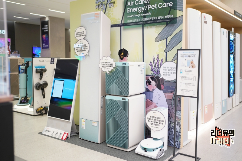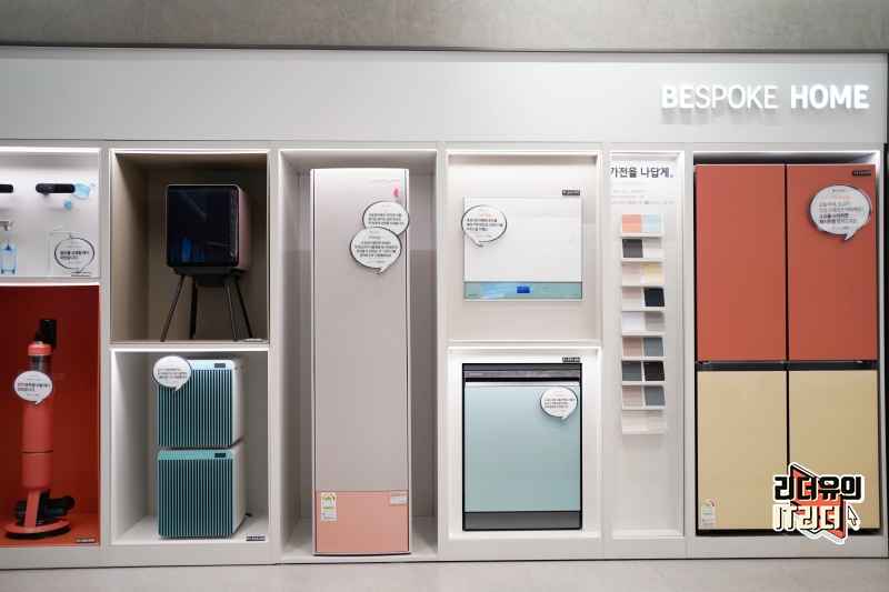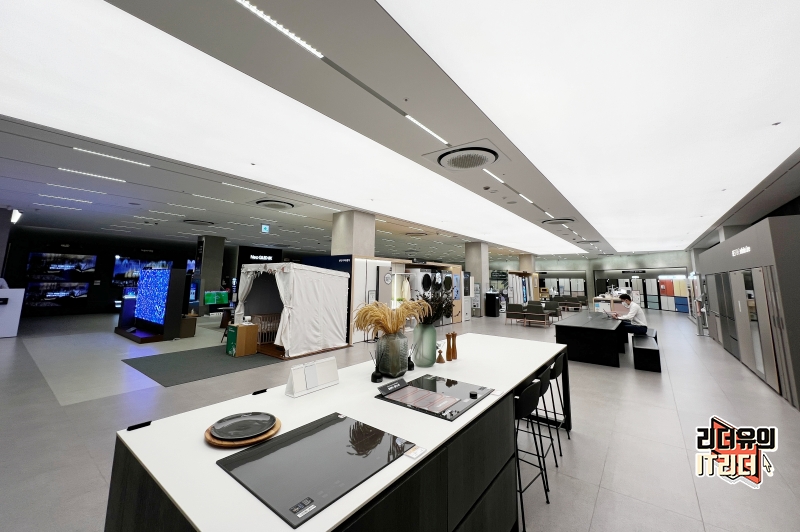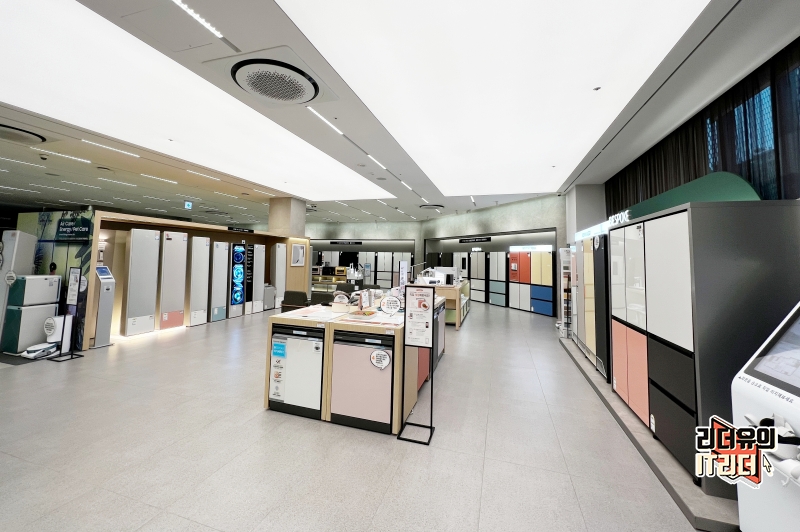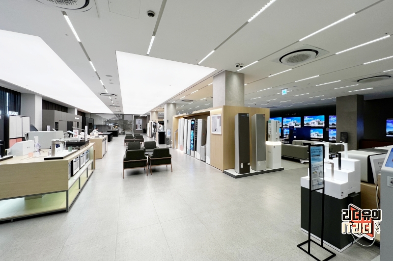 그리고 입구에 삼성 비스포크 무풍에어컨이 전시되어 있는데요. 여기가 메인 전시존은 아니고 삼성 비스포크 무풍에어컨을 자세히 보고 싶다면 2층으로 이동하시면 됩니다.