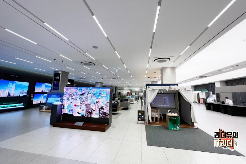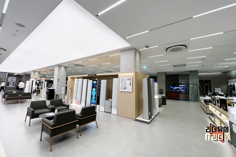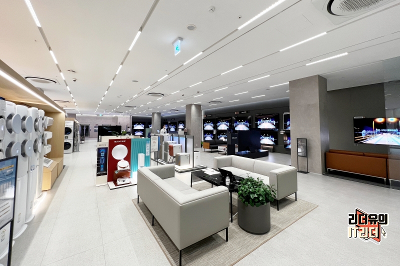삼성 디지털프라자 삼성대치본점 2층 모습입니다. 2층에는 TV, 세탁기, 냉장고, 에어컨 등이 전시되어 있습니다. 현장에서 보면 리얼하게 비교체험이 가능하니 내 취향 및 조건에 맞는 제품을 쉽게 고를 수 있어서 좋습니다.