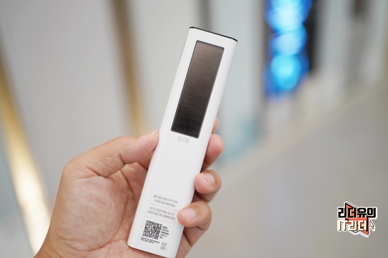 후면에 보면 태양광 패널이 있어 알아서 충전이 되는 효과를 볼 수 있습니다. 보통 리모컨을 사용하면 1회용 건전지를 사용하게 되는데 1회용 건전지를 사용하지 않으니 교체에 대한 부담이 없고 환경까지 신경을 쓰는 기술이니 더욱 매력적인 가치를 느낄 수 있습니다.