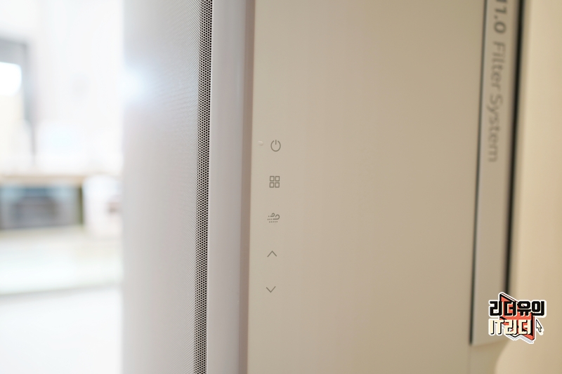 참고로 각종 컨트롤 버튼은 옆면에 배치되어 있습니다. 터치 방식으로 다이렉트 컨트롤을 지원하고 세부 컨트롤은 리모컨이나 스마트폰 앱으로 쉽게 할 수 있습니다.