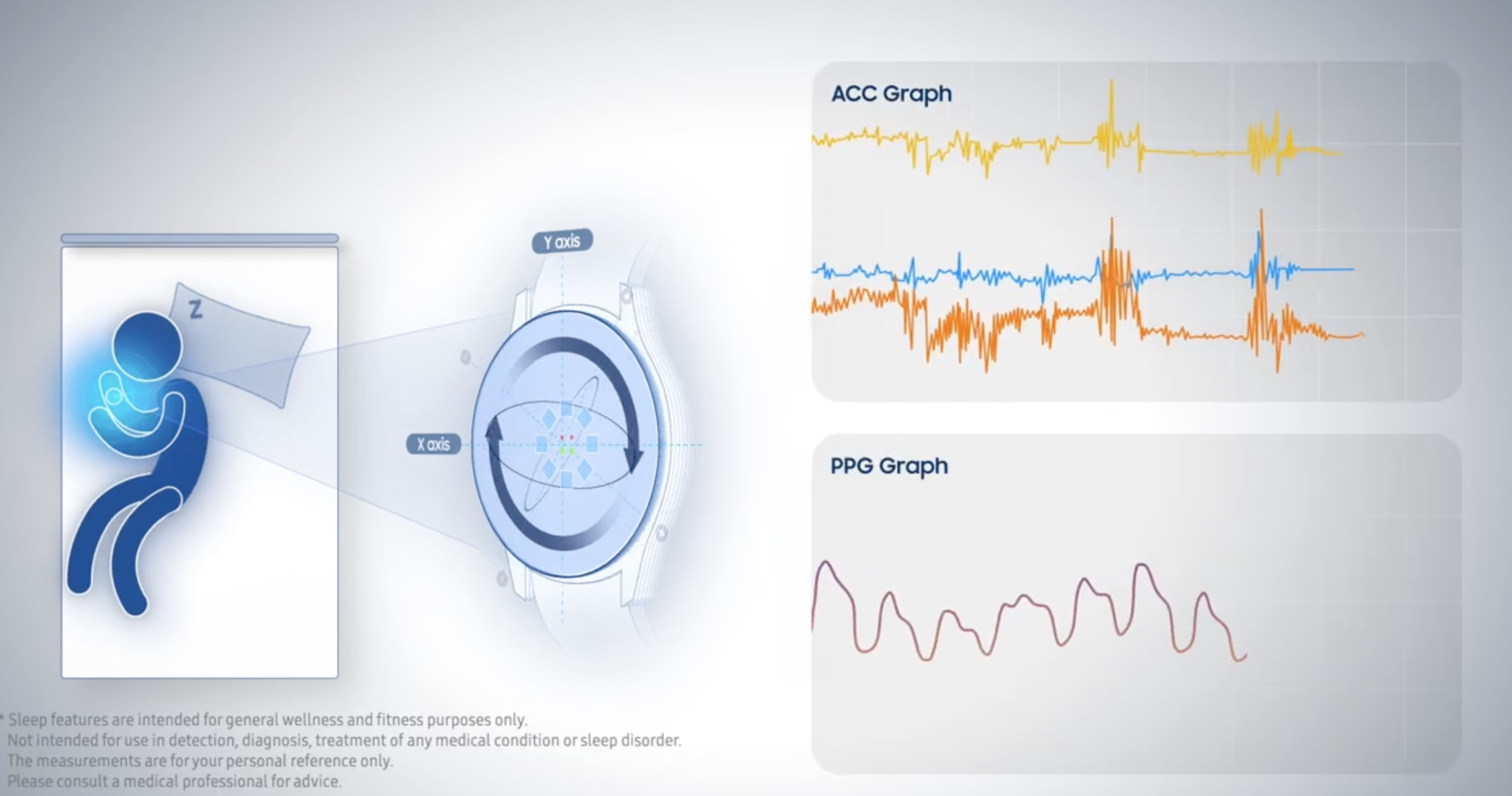 바이오액티브 센서는 수면과 체성분 측정에 공을 들였는데요. 건강에 있어 중요한 수면의 질을 측정하고 맞춤형 수면 코칭 프로그램을 도입해 수면에 잘 들수 있게 유도하고 있습니다.