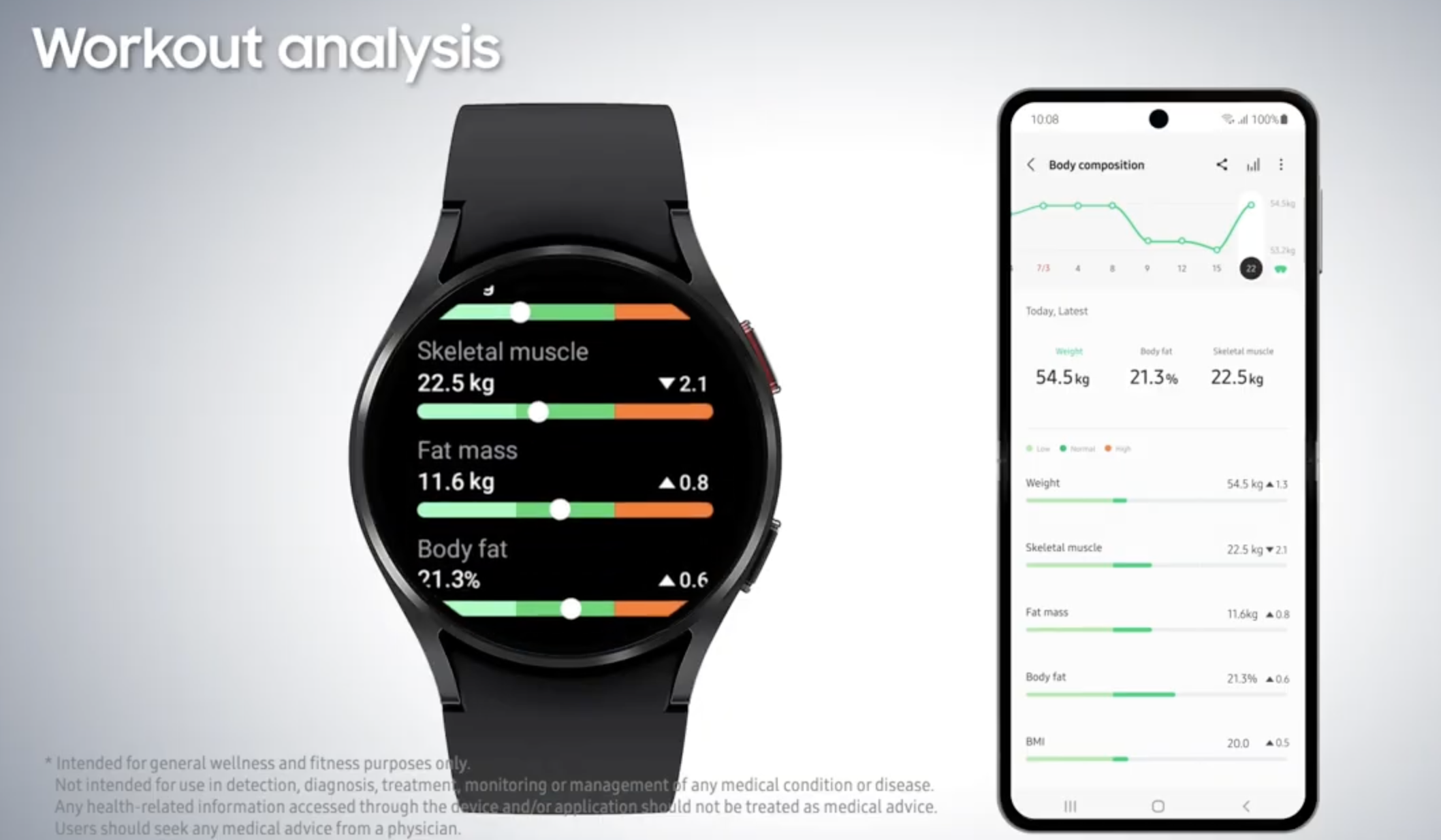그리고 피트니스시 바이오액티브 센서는 채성분을 측정해 체중 감량 수준을 넘어 신체 건강을 심도 있게 파악할 수 있게 하고 있습니다. 미세전류를 흘려 보내 체중 감량, 골격근량 증가 체지방 감소량, 체수분 수준 등을 설정한 목표와 비교 측정해 목표를 달성할 수 있도록 돕고 있습니다.