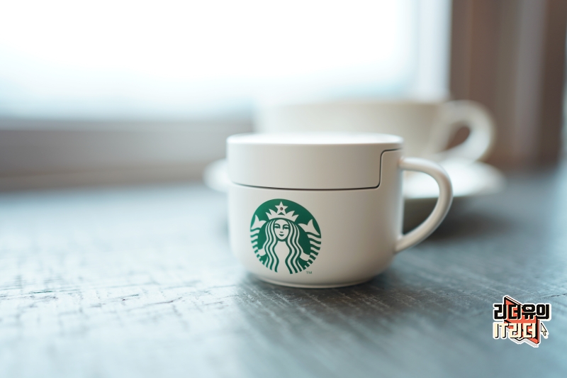 전체적인 디자인은 머그컵 디자인으로 되어 있고 앞에는 스타벅스 로고가 큼지막하게 새겨져 있습니다. 스타벅스 머그컵을 그대로 형상화한 디자인입니다.