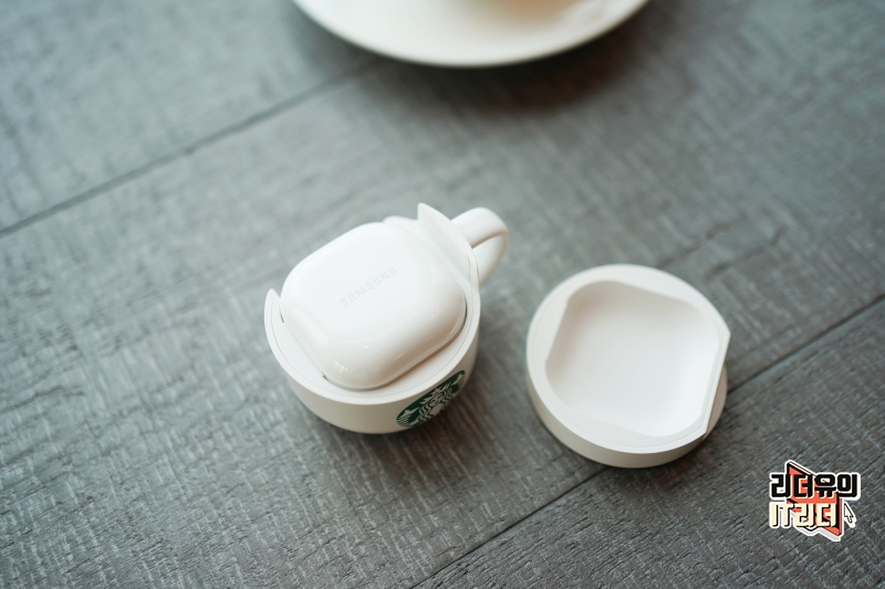 갤럭시버즈2 스타벅스 라떼아트 버즈2 케이스 커버를 열면 이런 느낌입니다. 안쪽에 감쪽같이 숨겨져 있는 모습이 재미있습니다.