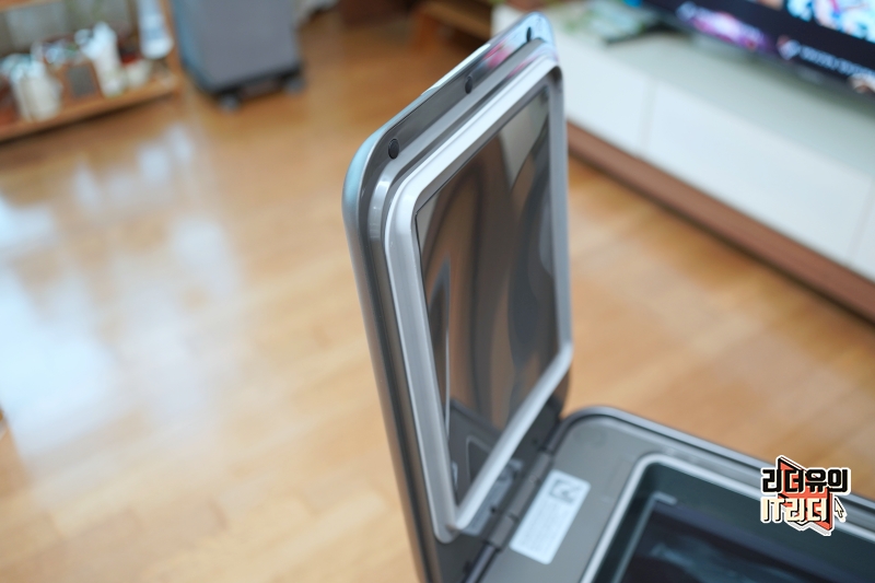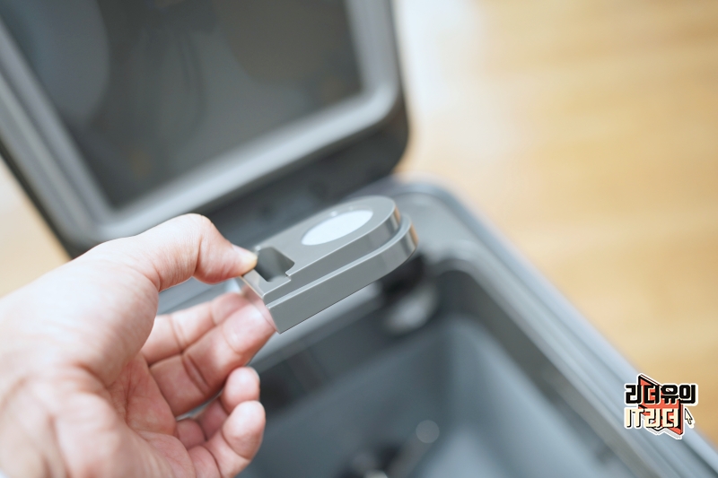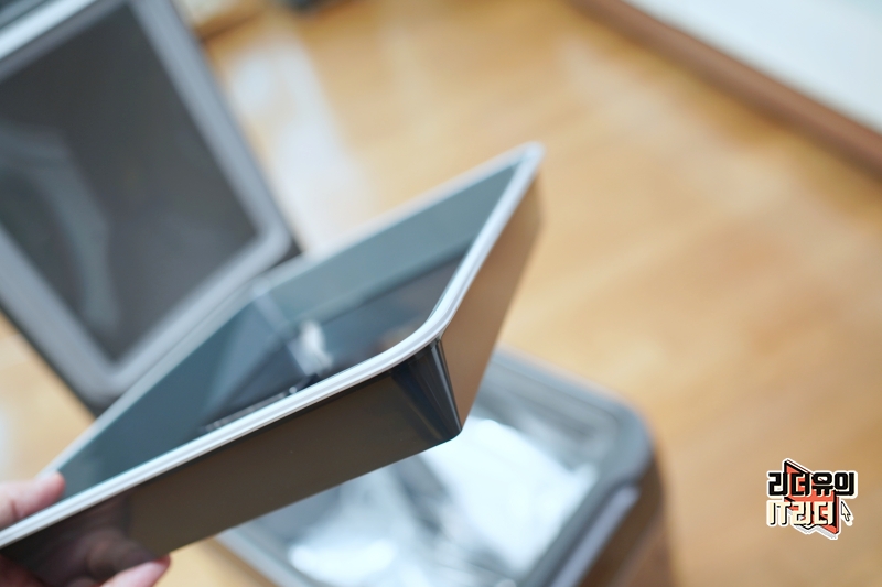 위쪽은 덮개로 되어 있습니다. 이 부분의 소재는 플라스틱입니다. 고급스러운 스페이스 그레이 색상을 통해 전체적으로 고급스러운 디자인을 느낄 수 있습니다.