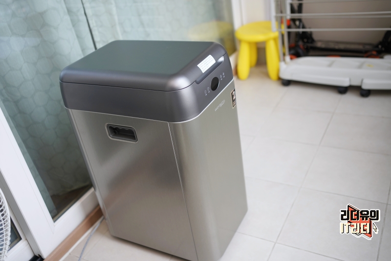 웰싱 미생물 음식물처리기는 디자인부터 예사롭지 않습니다. 전체 바디 소재가 메탈로 되어 있어 디자인에 신경을 많이 썼다는게 느껴집니다. 그만큼 인테리어에 신경 쓴 음식물처리기인데요. 그래서 주방에 설치하려는 분들도 있겠지만 음식물처리기는 송풍이 잘 되는 곳에 설치를 하셔야 합니다. 저같은 경우는 이렇게 베란다에 설치했습니다. 구입 전 어디에 설치하면 좋을지 고려해 보시면 좋을 것 같습니다.